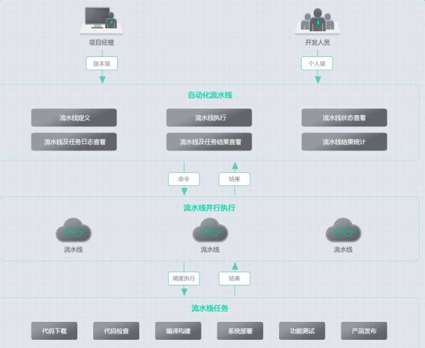 自动化流水线自动化流水线,拉通代码下载/代码检查/编译构建/部署到产品正式发布整个交付流程,可定制自动化持续交付;支持多项任务顺序、并发执行。
