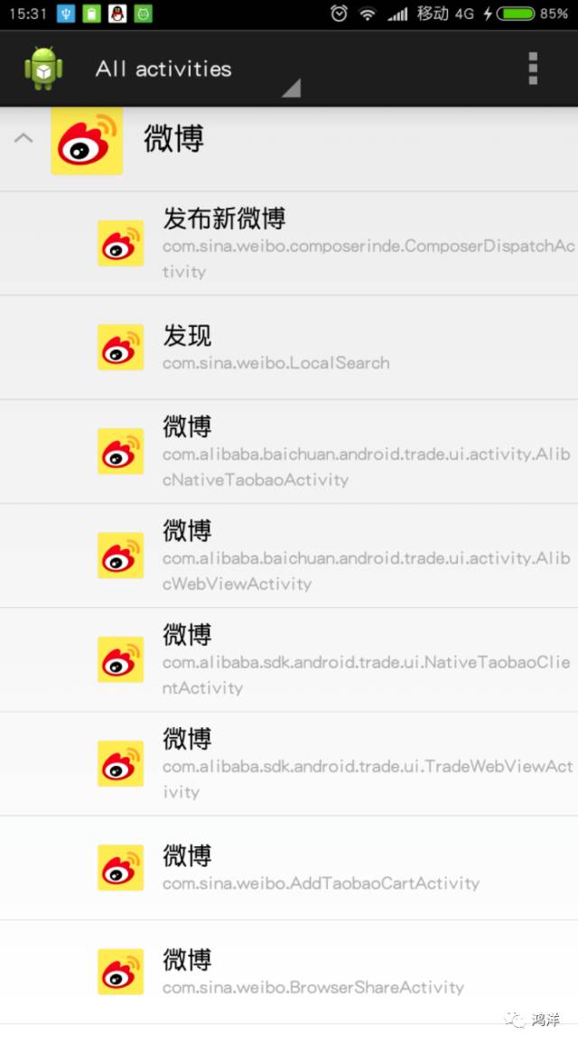 http://www.jianshu.com/p/8be491372397(4)ActivityLauncher该款软件显示每个应用的Activity,点击Activity可直达该界面,部分因权限问题导致打开失败。