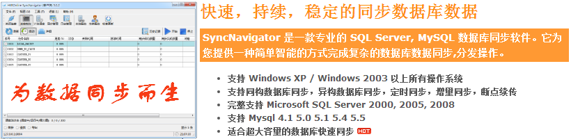 最近在研究数据库同步的问题,在网上查了很多资料,也请教了很多人,找到了通过快照复制的方法。 研究了一下,发现以前用过这个方法,效果不是很好,果断放弃。 经过一番查找和其他人的指导,我终于从一位热心网友那里得知了一个非常好用的软件——SyncNavigator。