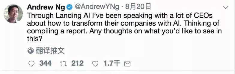 12月13日,吴恩达在Medium专栏上po出一封公开信,正式公开免费地发布AI Transformation Playbook ,中文译作《人工智能转型指南》。这份指南来自于他在Google和百度亲自带队AI的核心总结,也是他见得广、听得多、被咨询无数后的精华提炼。公众号后台回复:“转型”,获取手册PDF。
