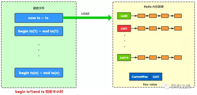 针对上面第一点和第二点的问题,社区也设计了解决方案,在队列中加入时间分区,Broker只将当前时间片比较近的队列加载到内存中,其余时间片分区持久化在磁盘上,如示例图所示 如下图:
