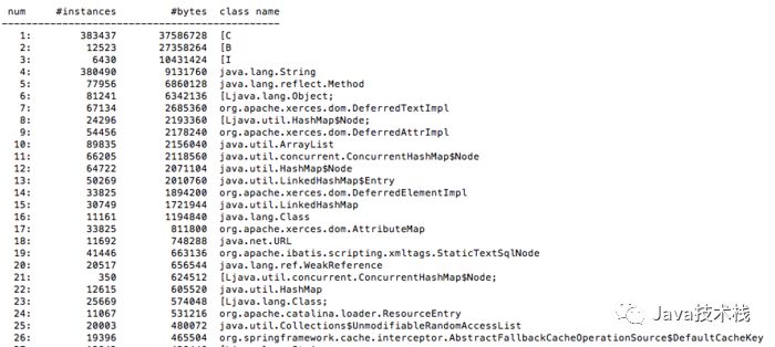1)把堆dump下来再用MAT等工具进行分析,但dump堆要花较长的时间,并且文件巨大,再从服务器上拖回本地导入工具,这个过程有些折腾,不到万不得已最好别这么干。